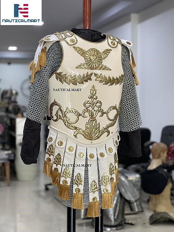 Greek Body Armor Muscle Cuirass Jacket Leather Vest Body Armour Spartan Masculata Greeko - Roman Halloween Costume, white, Large (Muscle Armor W/Tunic)