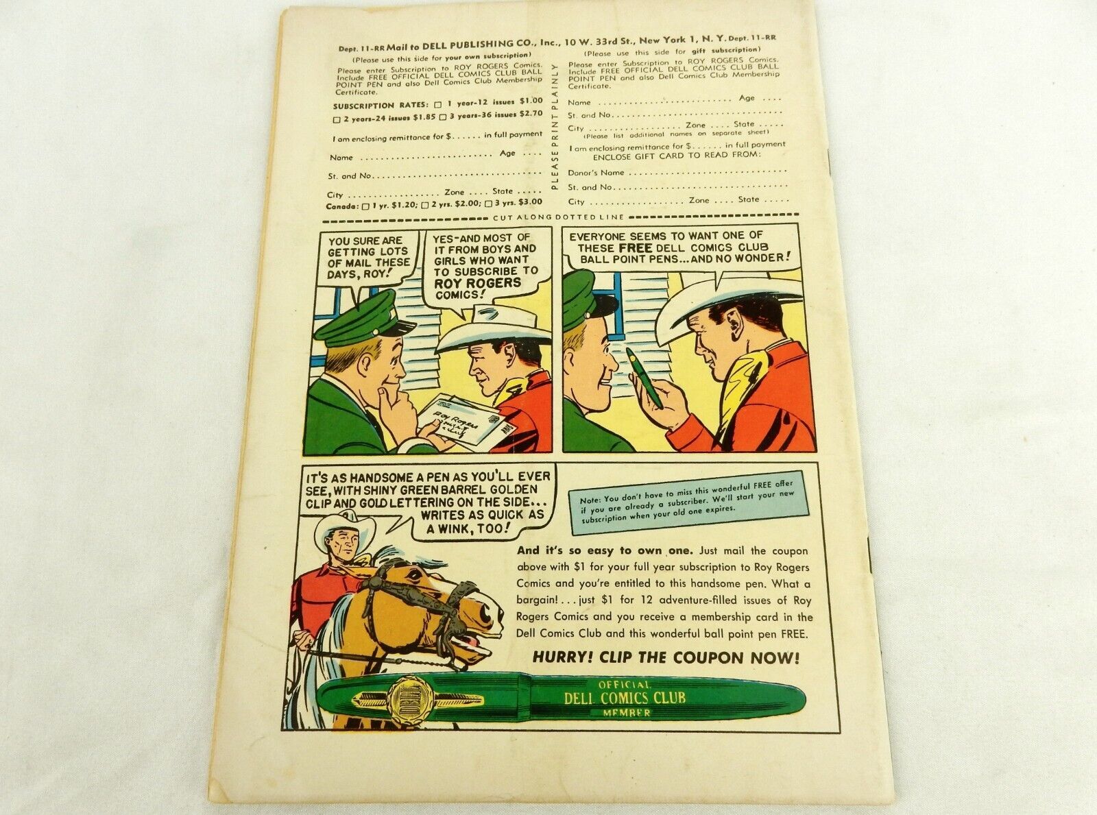 Back cover features a full page advertisement for free pen with subscription offer