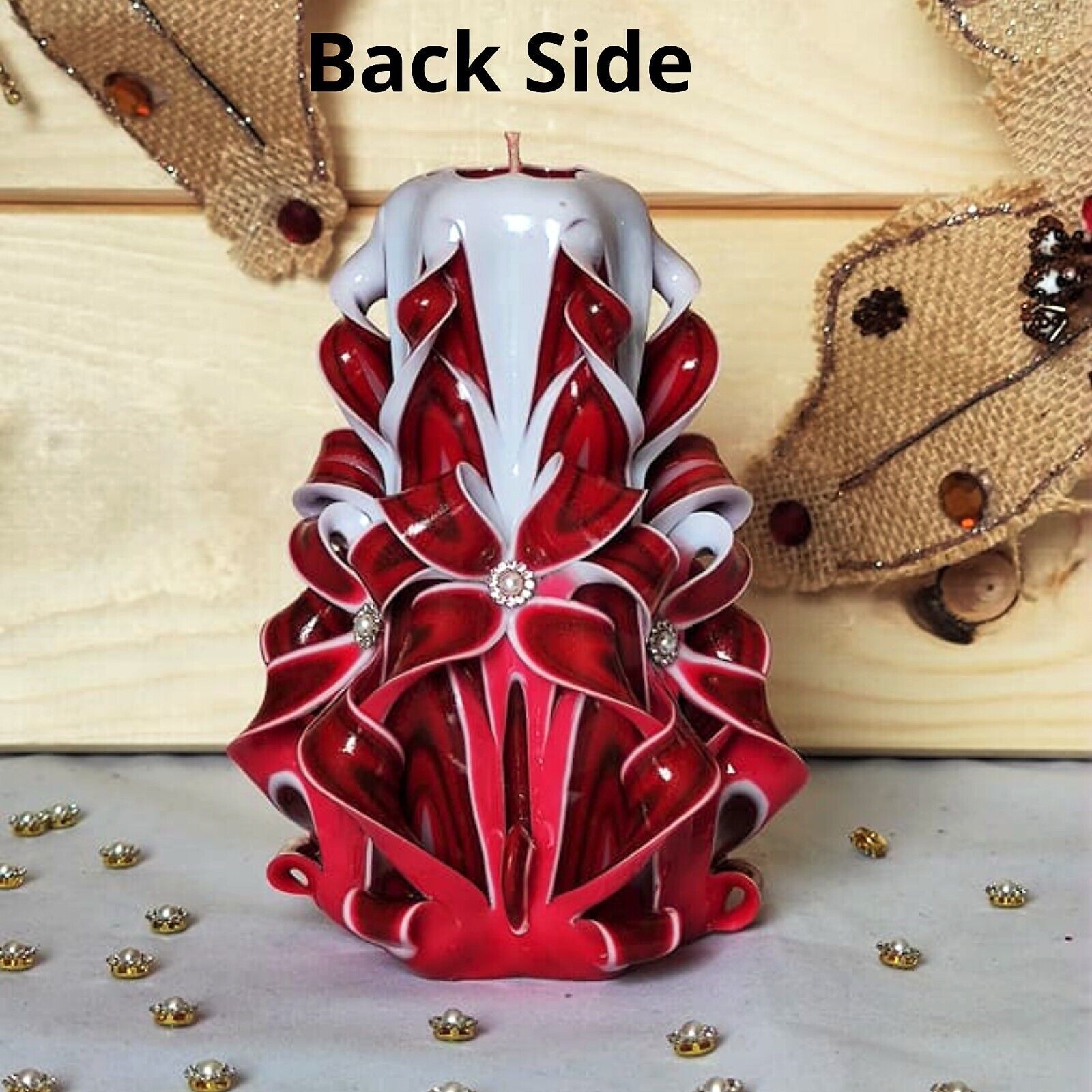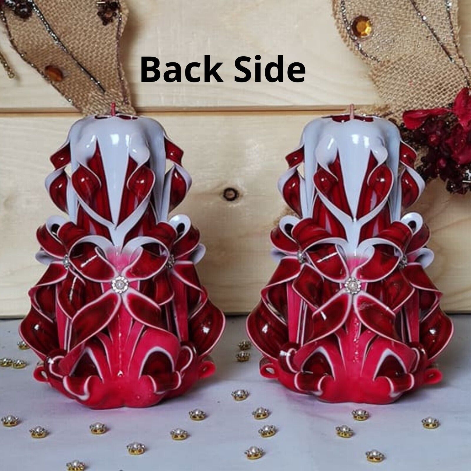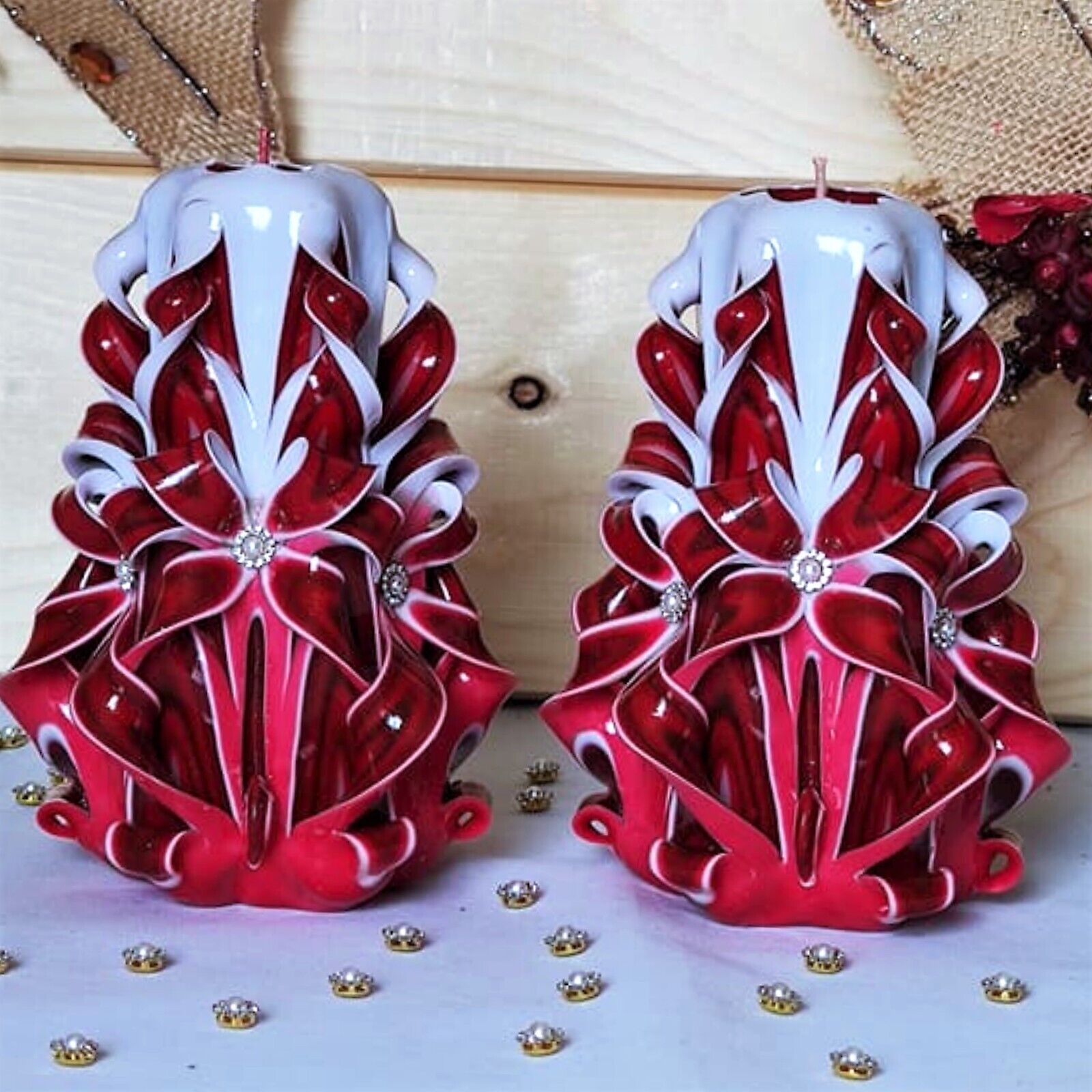 Carved Candles Home Decor Handmade Design Gift Handcarved Red White Set Of Two