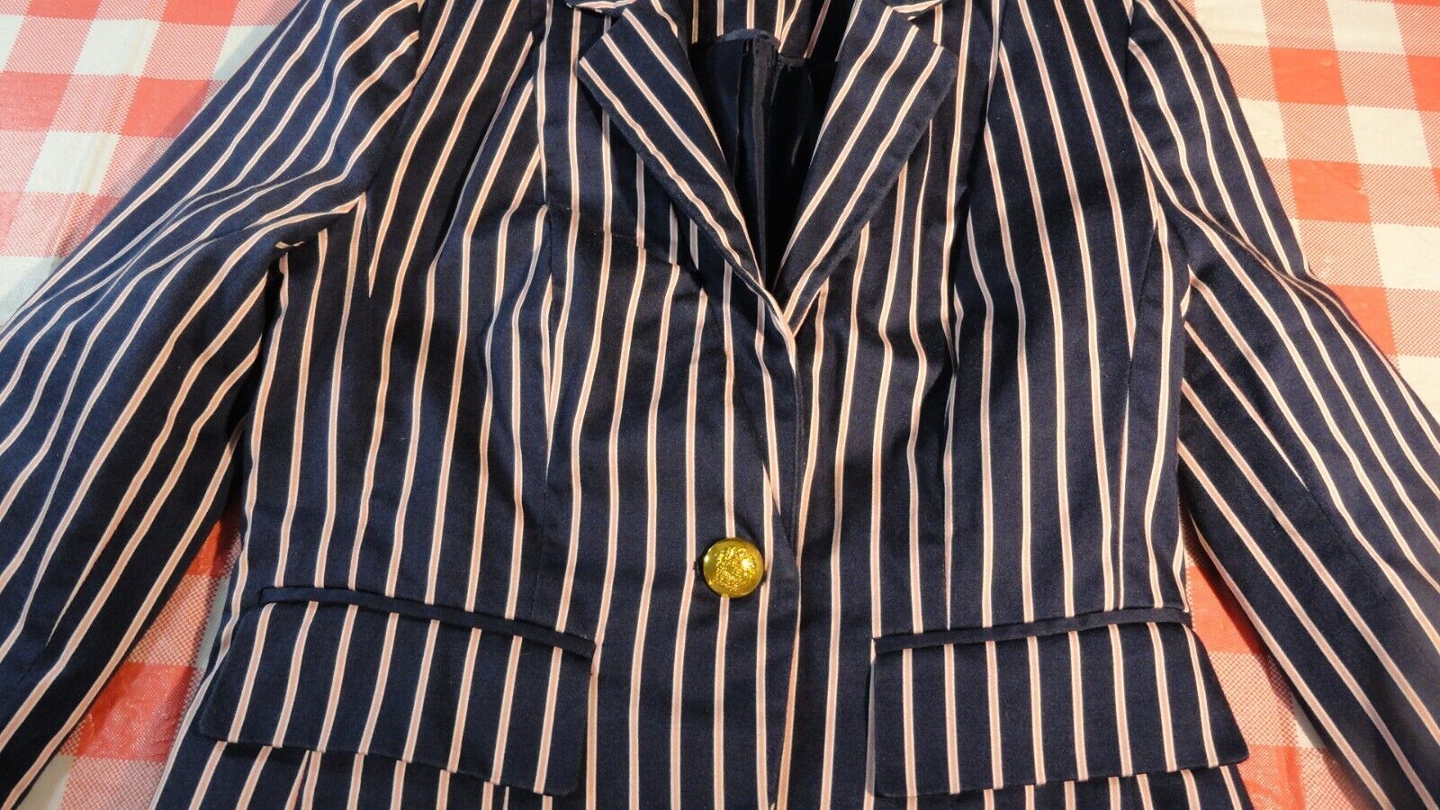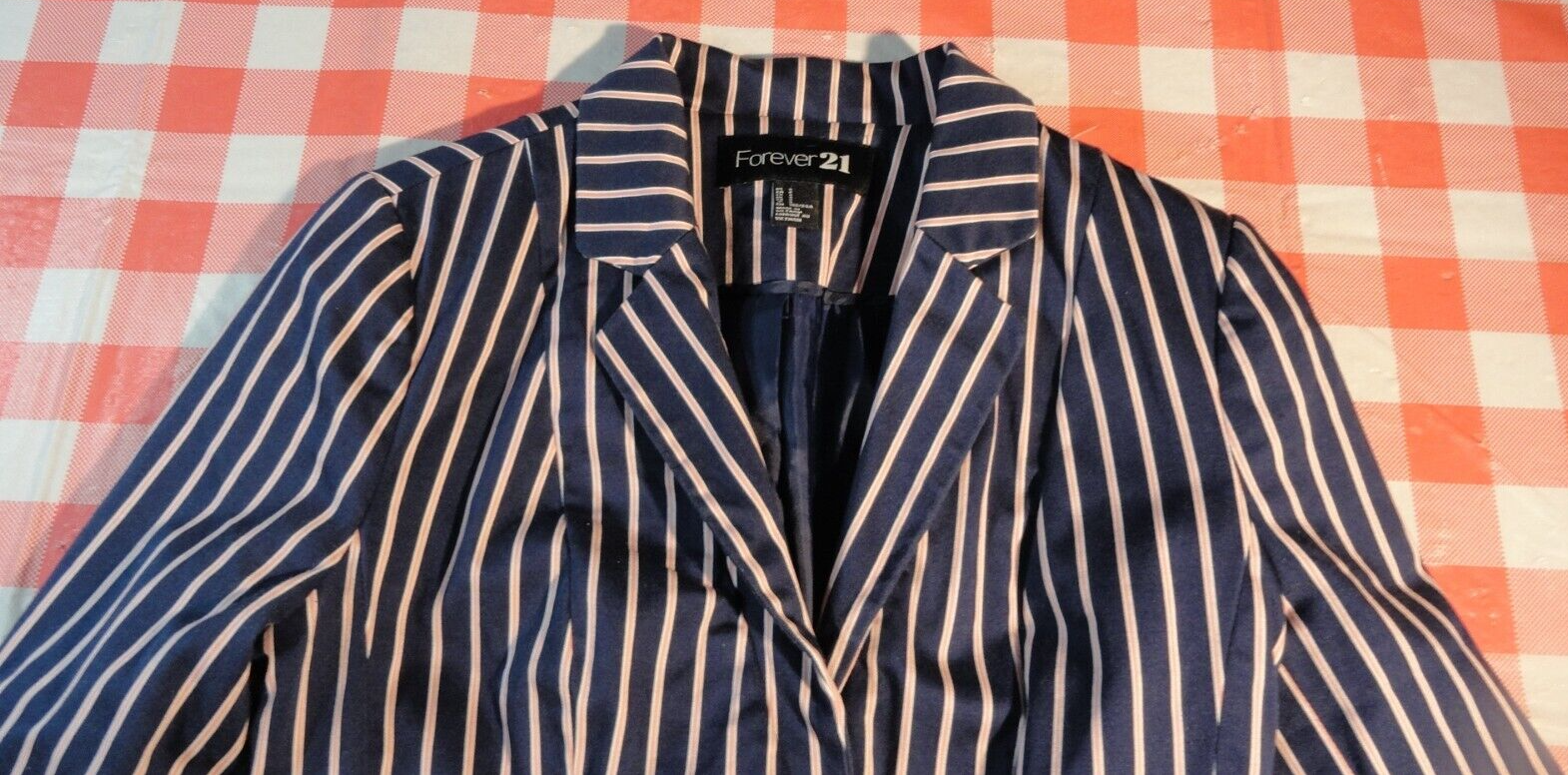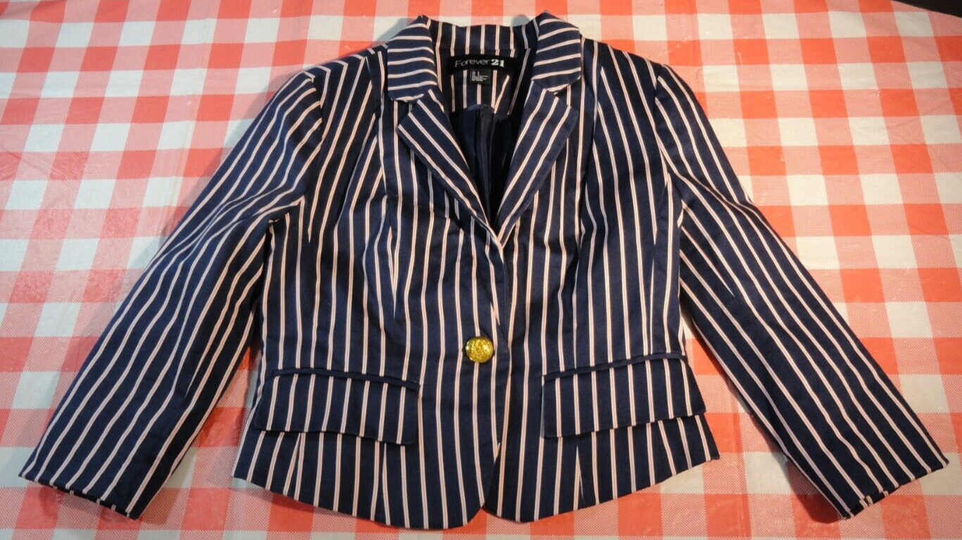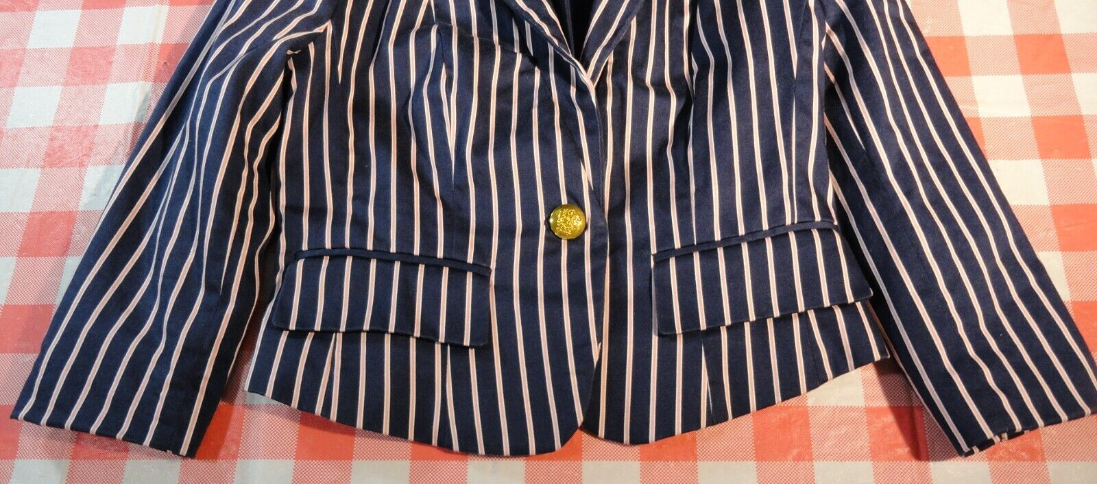 FOREVER 21 DARK BLUE PINK STRIPED CROPPPED 1 BUTTON CUTE FORMAL DRESS COAT SMALL