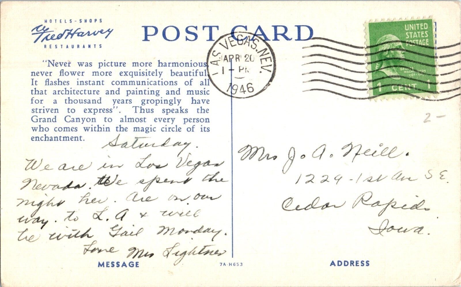 Hermit Rim Road Grand Canyon National Park Arizona Postcard Posted 1946