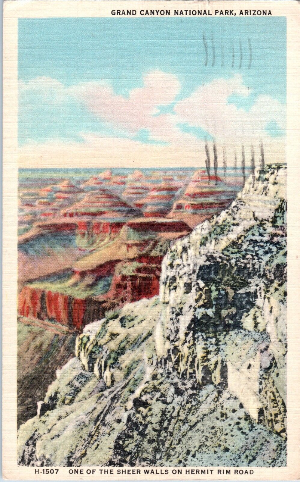 Hermit Rim Road Sheer Wall Grand Canyon Fred Harvey Arizona Postcard 1946