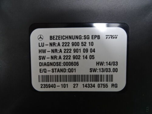 15 Mercedes W222 S550 module, parking brake, and similar items
