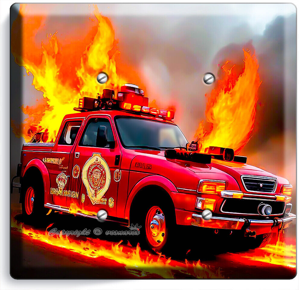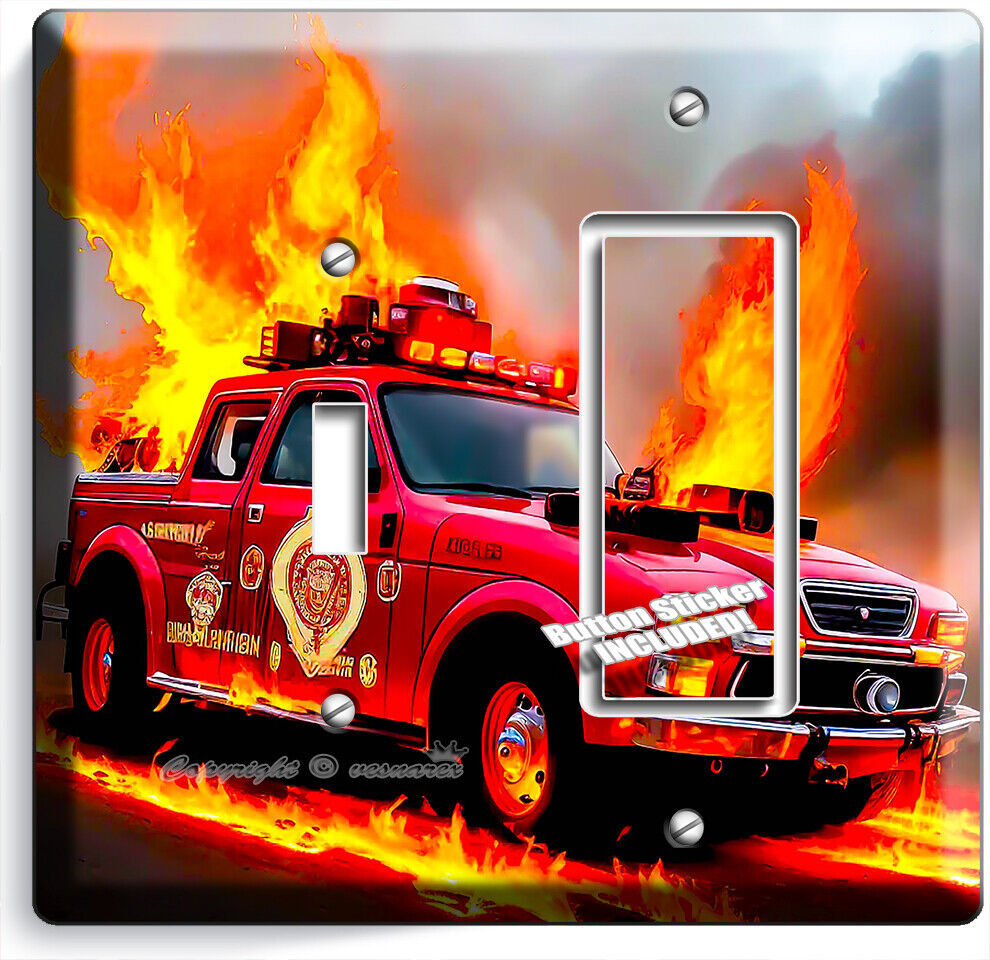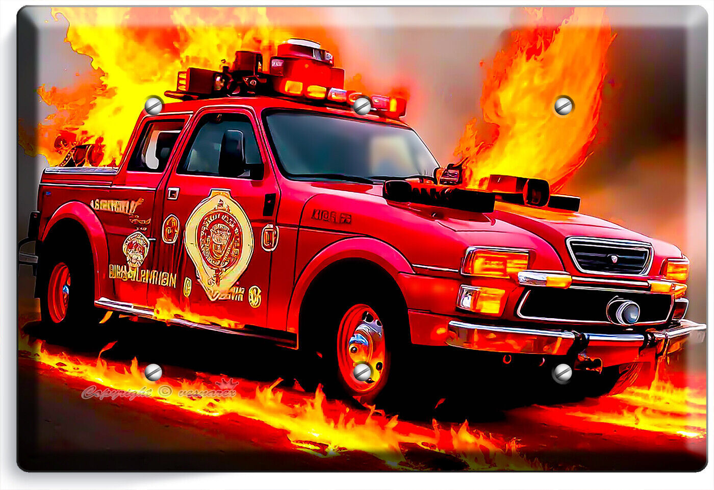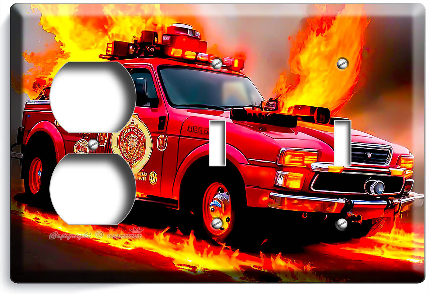 RED FIREFIGHTER FIRE PICKUP TRUCK LIGHT SWITCH OUTLET WALL PLATES FIREMAN DECOR