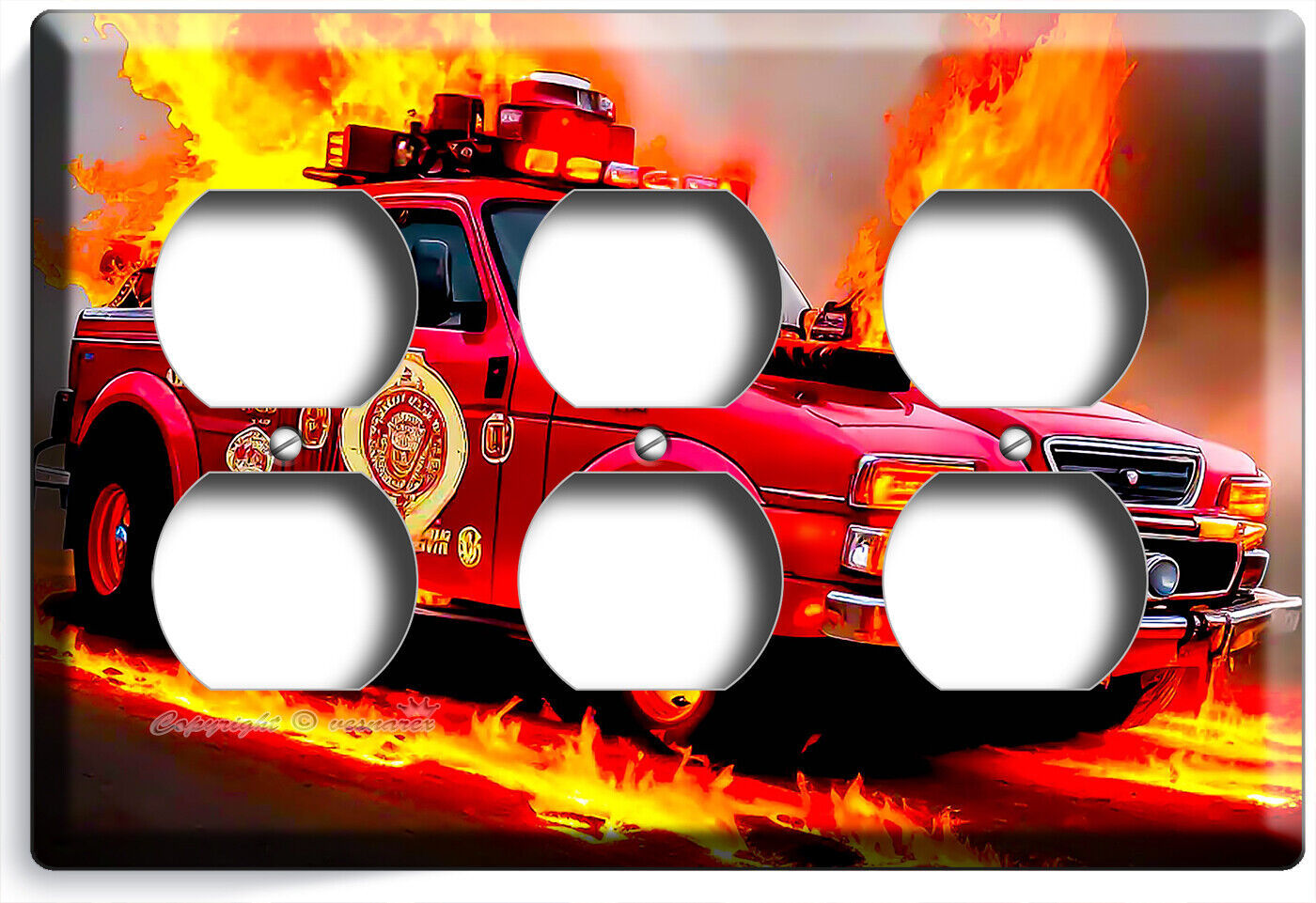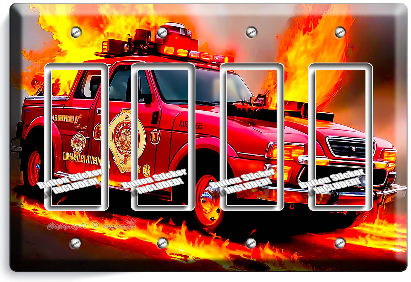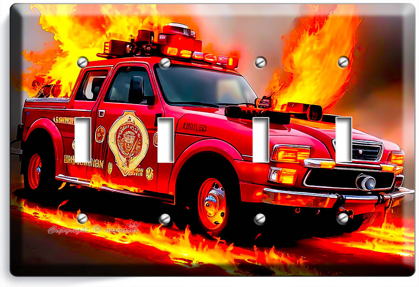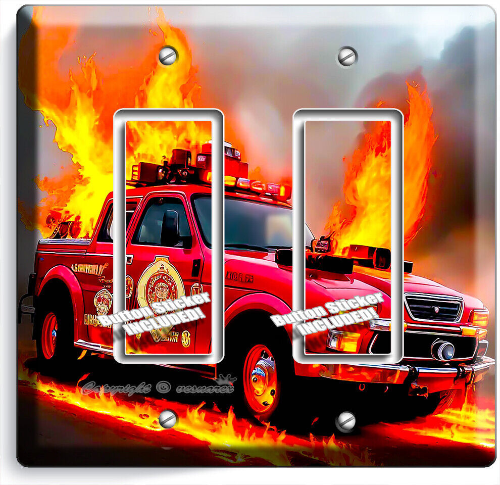 RED FIREFIGHTER FIRE PICKUP TRUCK LIGHT SWITCH OUTLET WALL PLATES FIREMAN DECOR