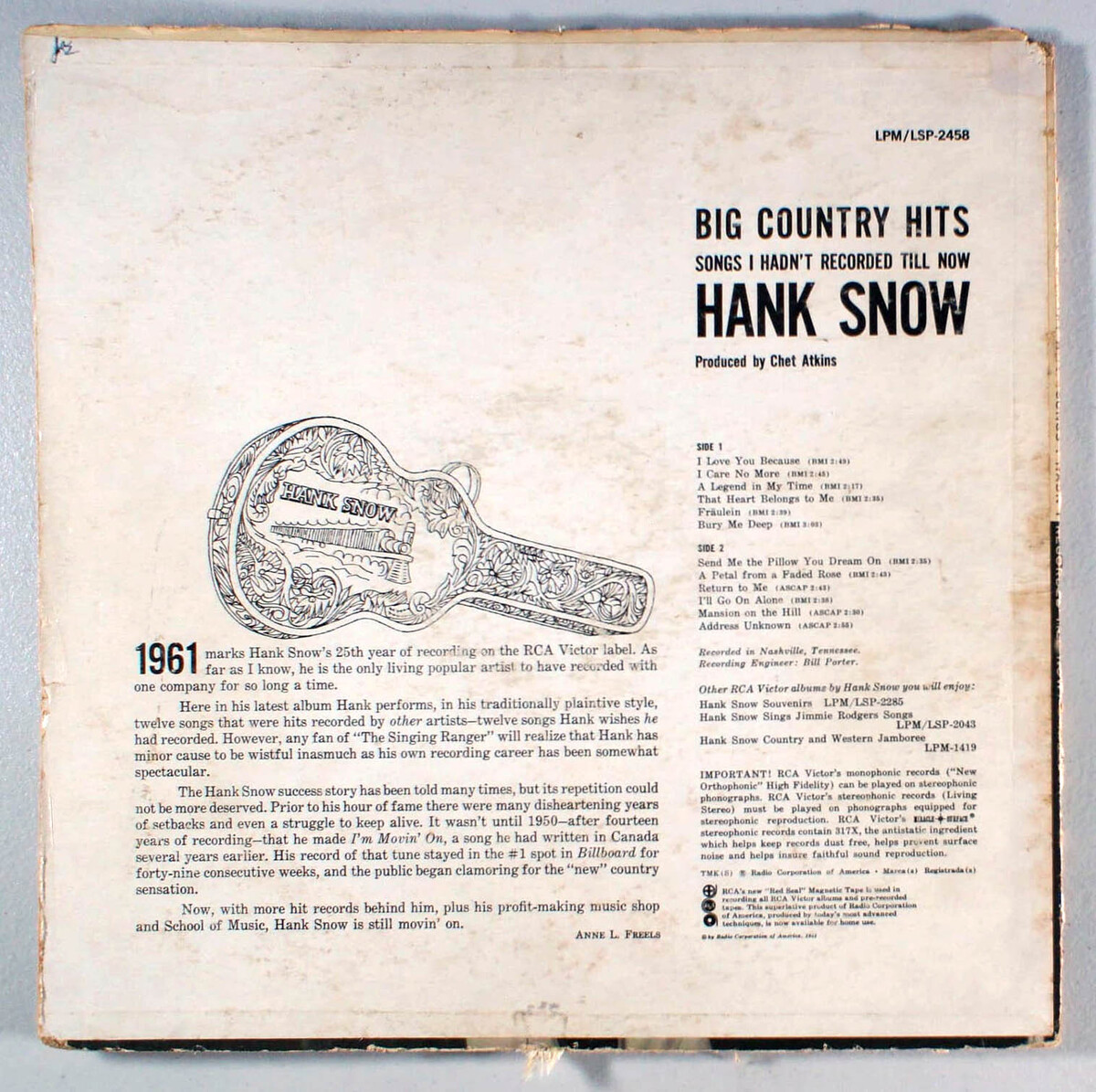Hank Snow - Big Country Hits (1961) Vinyl LP I Love You Because
