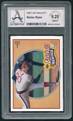 1991 UD BASEBALL HEROES NOLAN RYAN #11 GRADED ROLLIE FINGERS AUTHENTIC AEI 9 MT