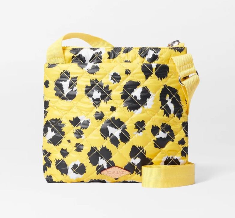 MZ WALLACE Rec Metro Flat Quilted Nylon Crossbody ~NWT~ Yellow Leopard