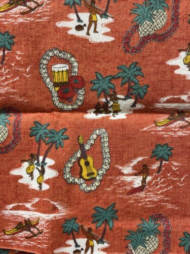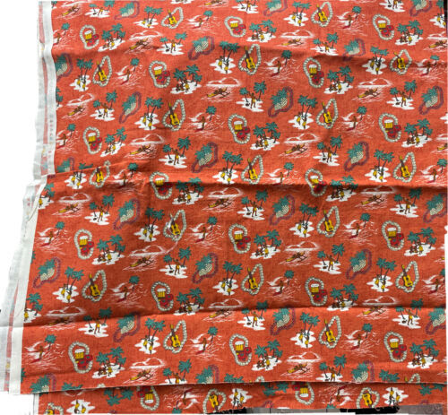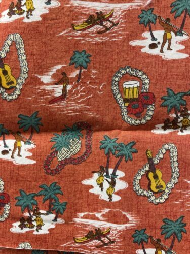 Hawn Hawaiian Red Fabric Ukulele Leis Palm Trees 44 inches x 1.25 ft