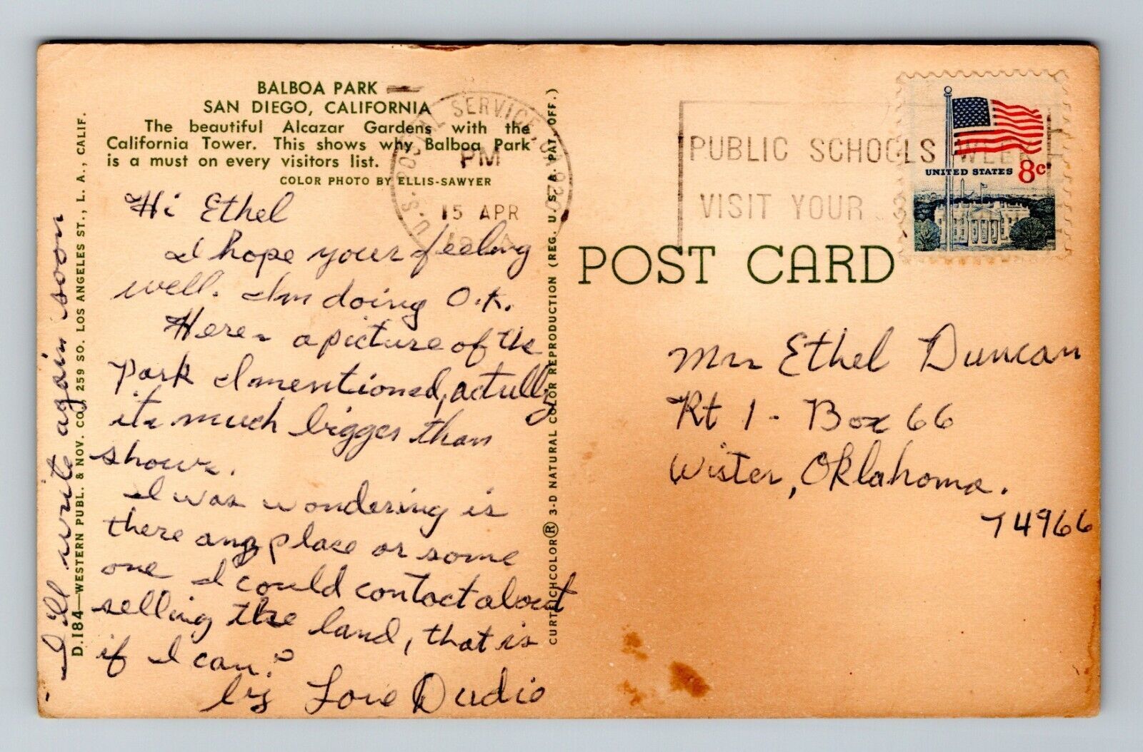 Alcazar Jardins Balboa Park San Diego California Ca Chrome Carte Postale E16