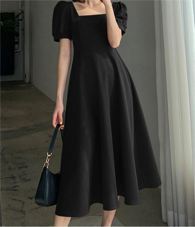 Square Neck Tea Long Lantern Sleeves Satin and similar items