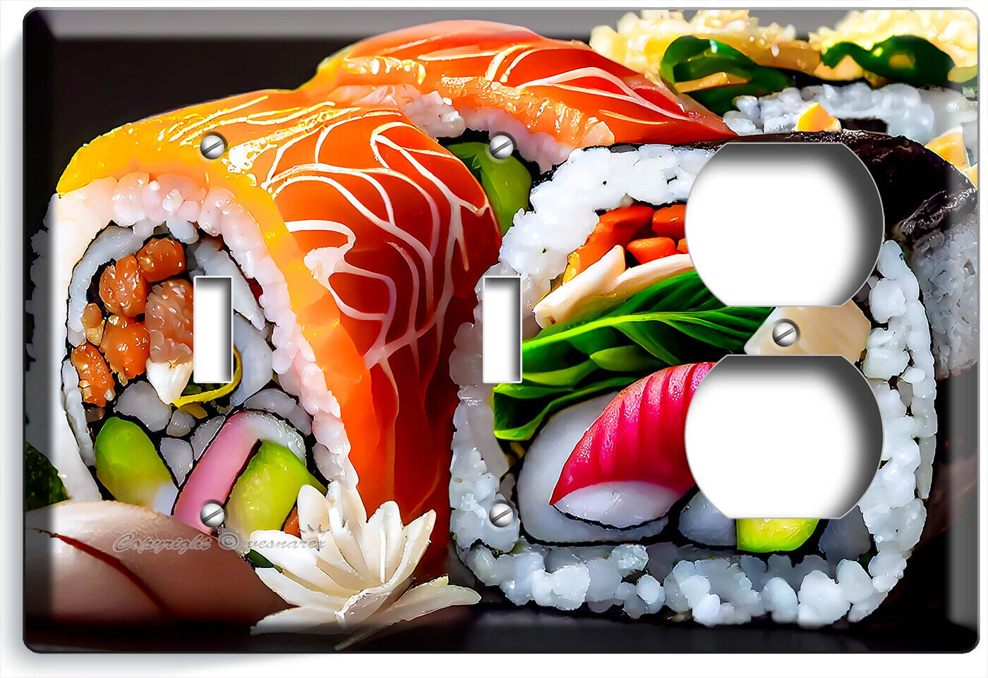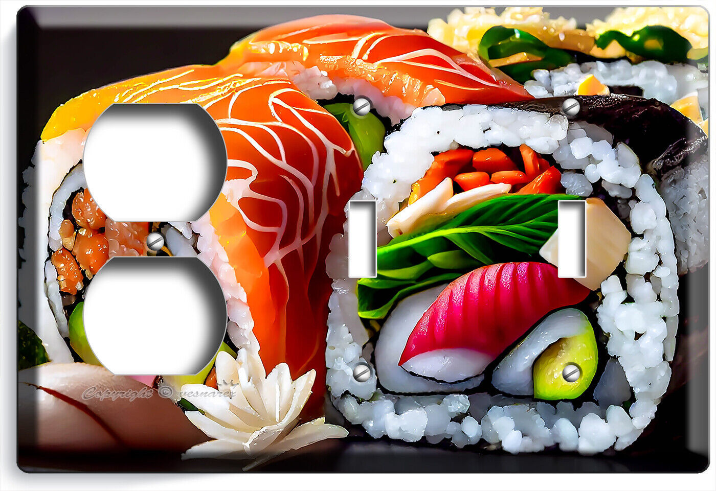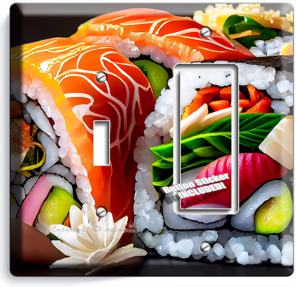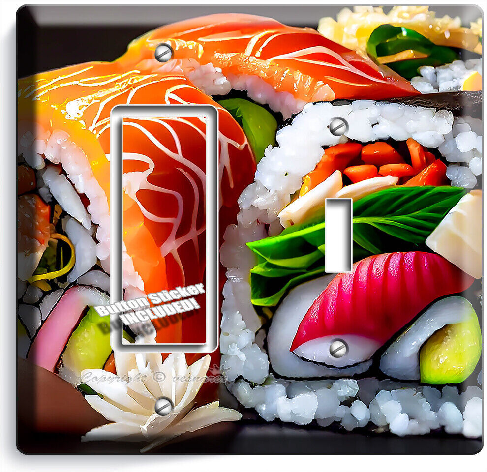 FRESH FISH SUSHI ROLLS LIGHT SWITCH OUTLET WALL PLATES JAPANESE FOOD CAFE DECOR