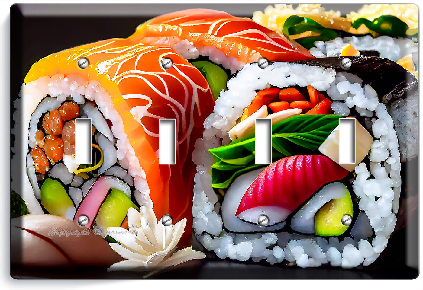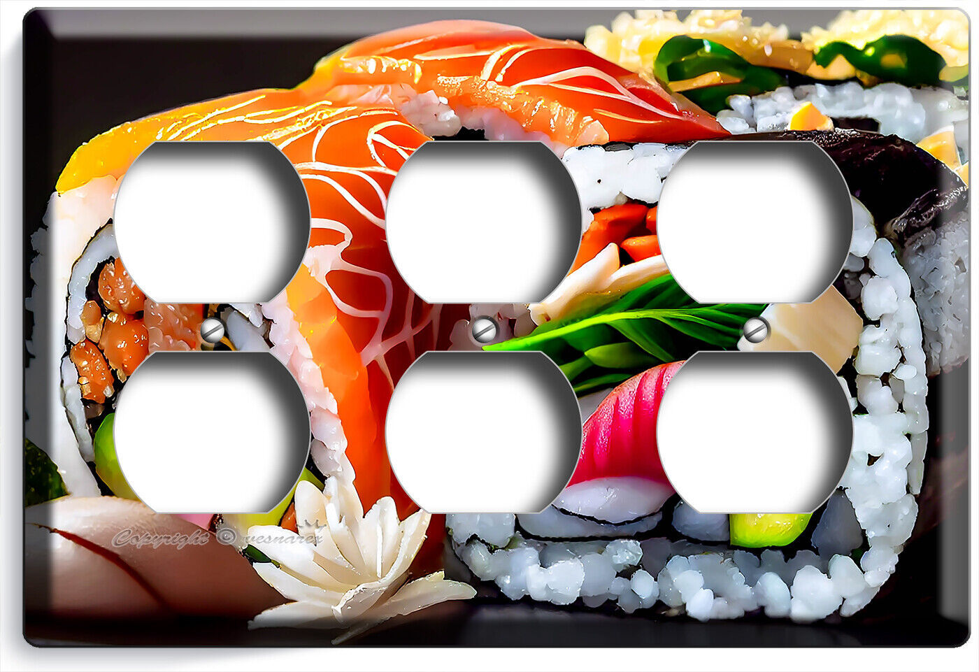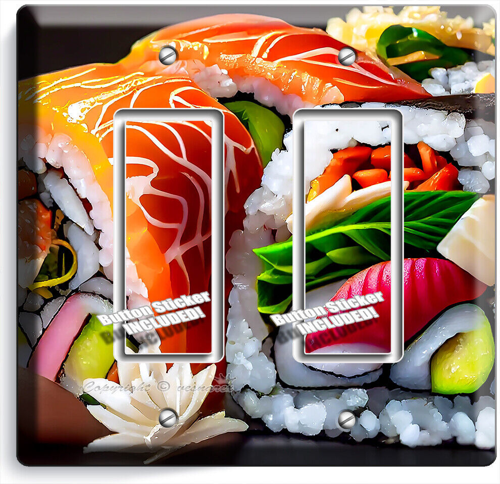 FRESH FISH SUSHI ROLLS LIGHT SWITCH OUTLET WALL PLATES JAPANESE FOOD CAFE DECOR