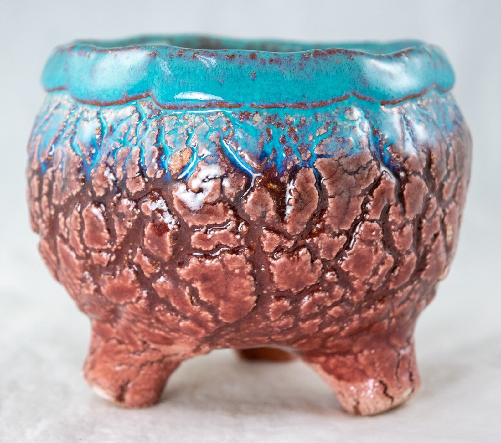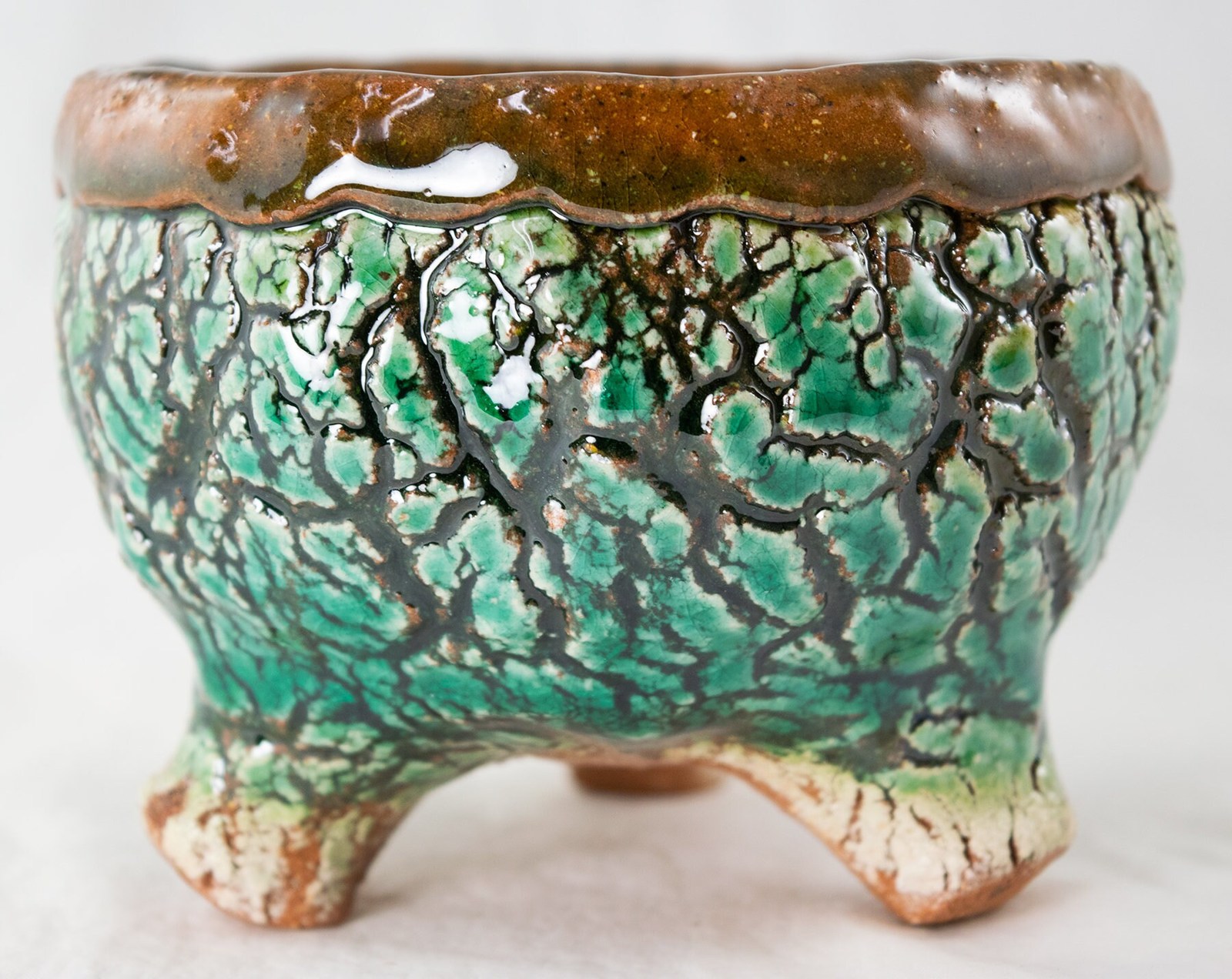- Coated with colorful glaze in a unique pattern, which makes each pot one of a kind.