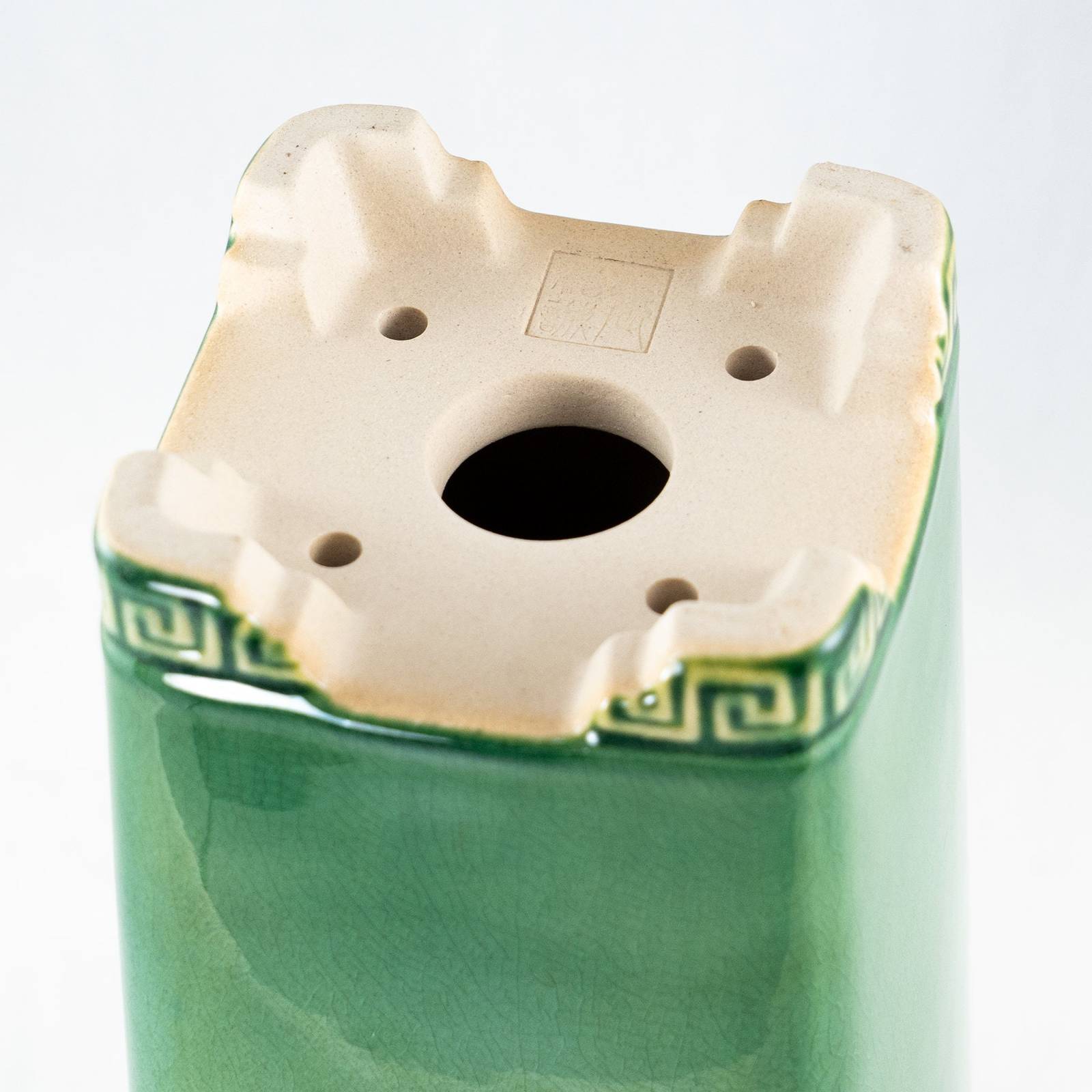 Fine Green Square Drum Cascade Bonsai Pot, Orchid Planter - 4.75"x 4.75"x 9"