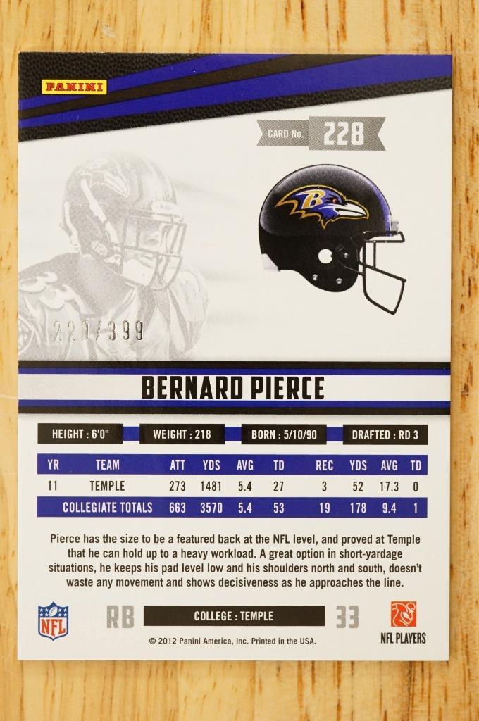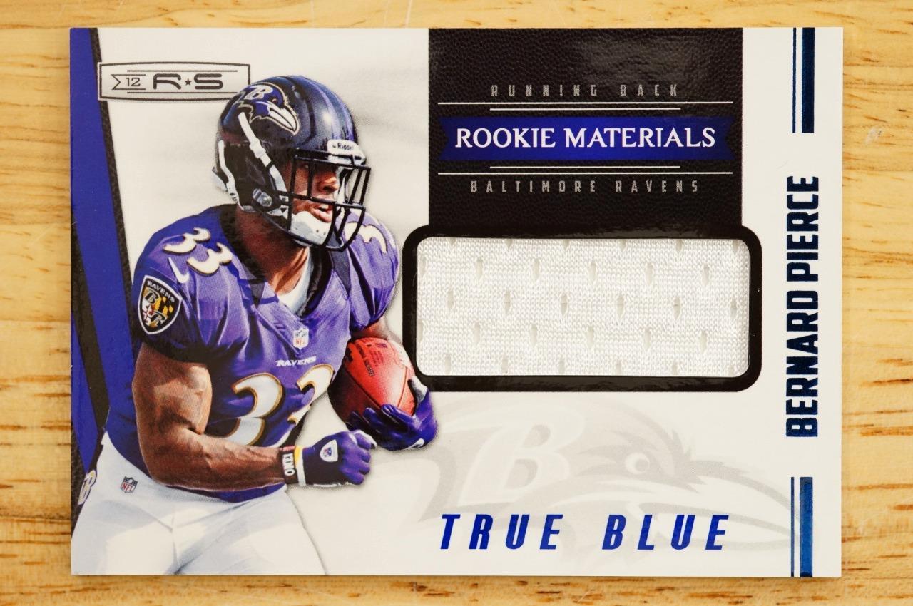 2012 Rookies and Stars True Blue Football Card #228 Bernard Pierce Jersey 220/399 - Baltimore Ravens.