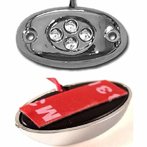 12V MOTORCYCLE RED LED ACCENT LIGHTING. (3) CHROME MODULES WITH 4 RED LEDS IN EACH MODULE. ADHESIVE DOUBLE SIDED TAPE ON BACKSIDE AND TWO SCREW HOLES IN THE ABS CHROME MODULE FOR EASY MOUNTING. Red LED Color. Operates from 7V-15V DC. 120 degree viewing angle, 4 LEDs per Light. LED's last longer use less power (uses 30mA of power @ 12V DC). 4 LED's 5mm (Not SMD LEDs with lens cap). 36" wire leads (Red = positive, Black= negative). Plastic Chrome module with 2 mounting holes. Includes double sided mounting tape on backside Measures L=1 1/2" H=3/8" W=3/4" Completely waterproof, safe for wet areas.