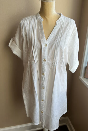 Club Z Collection Womens Tunic White Swim Cotton Cover up Sz L PinTucks