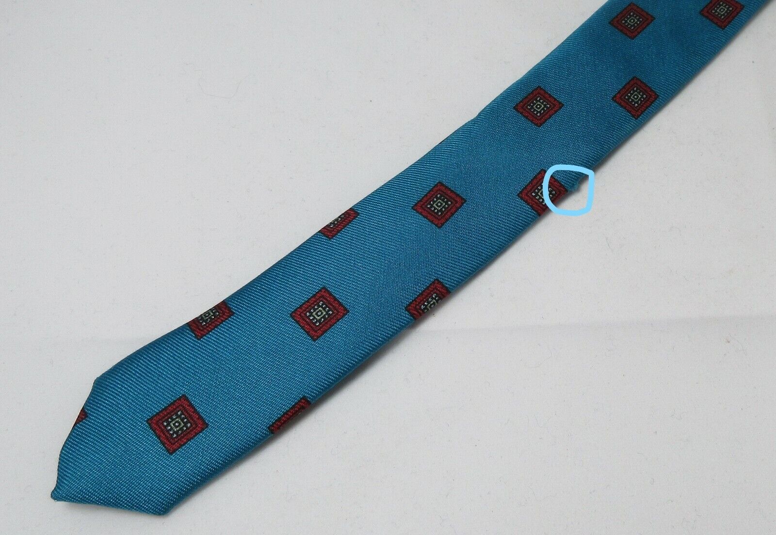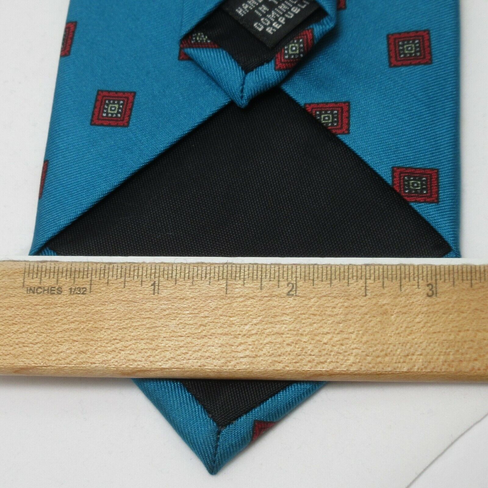 100% Silk Tie Blue with Red Squares Abstract 59" x 3.25"