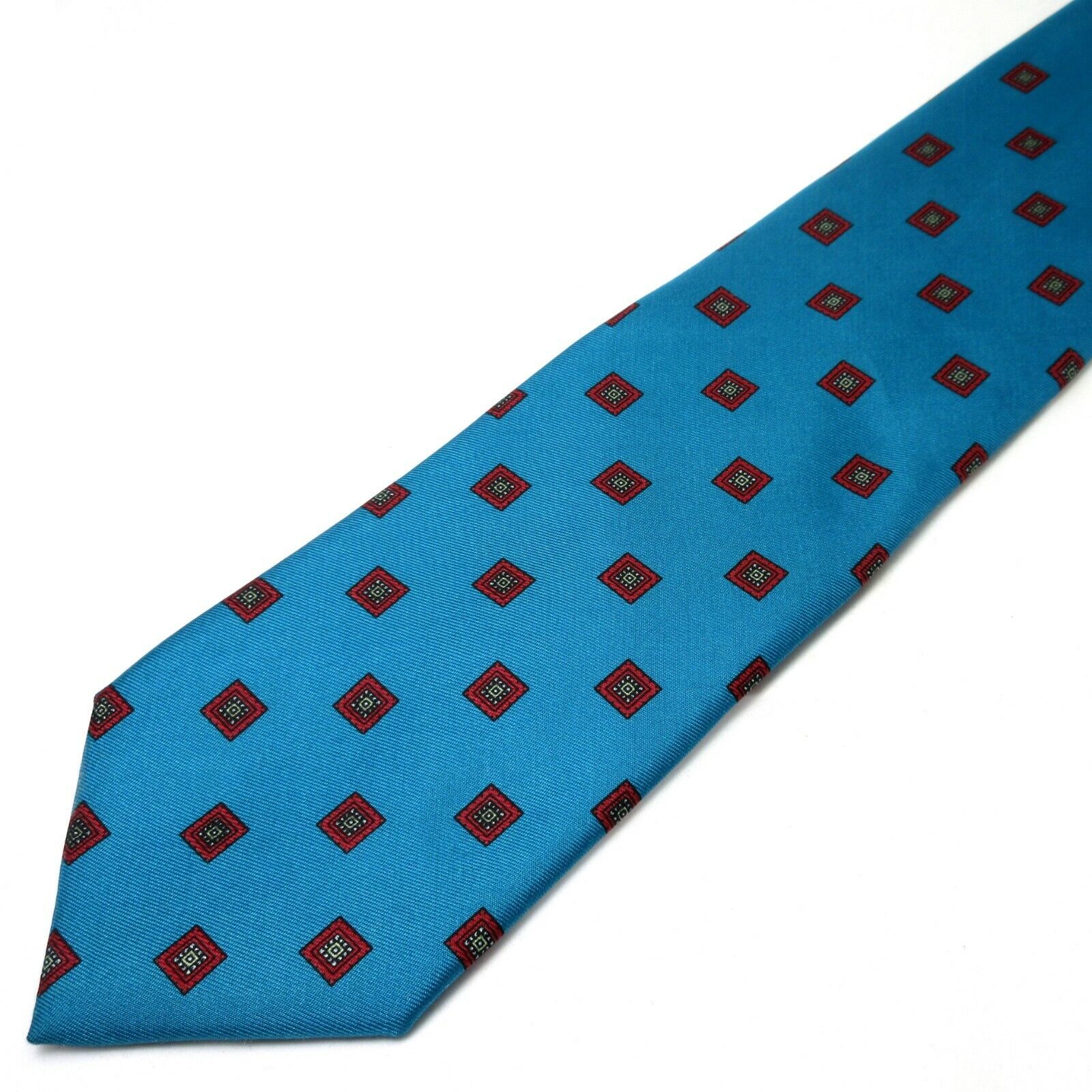 Claybrooke Blue with Red Squares Silk Tie 59" x 3.25"