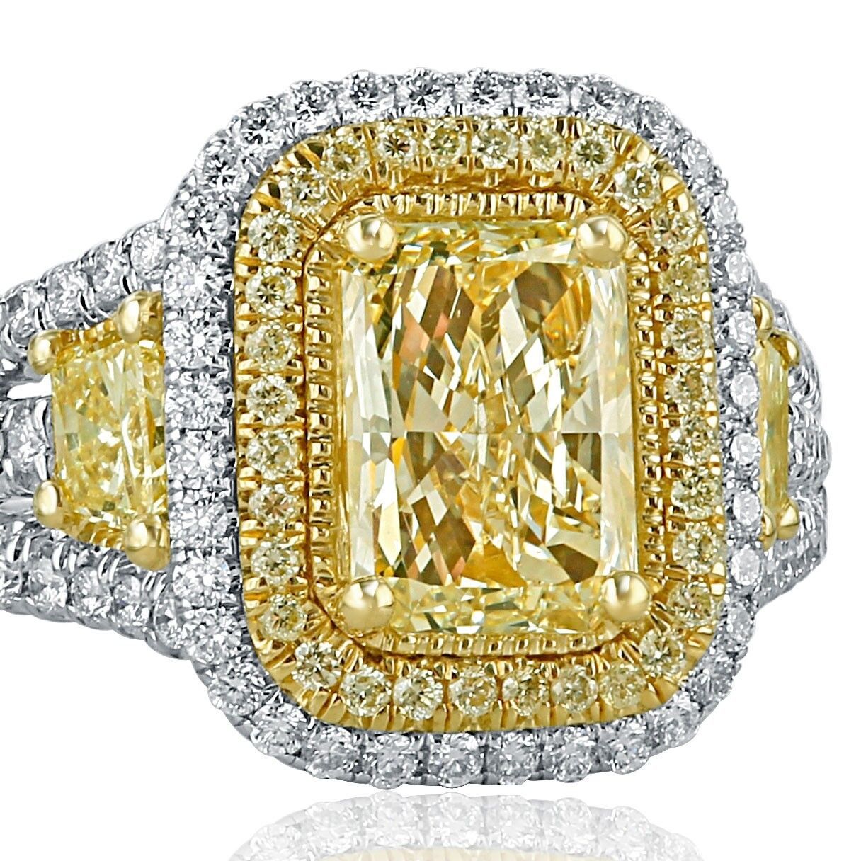 Authenticity Guarantee GIA Certified 2.65 Ct Very Light Yellow Radiant Cut D...