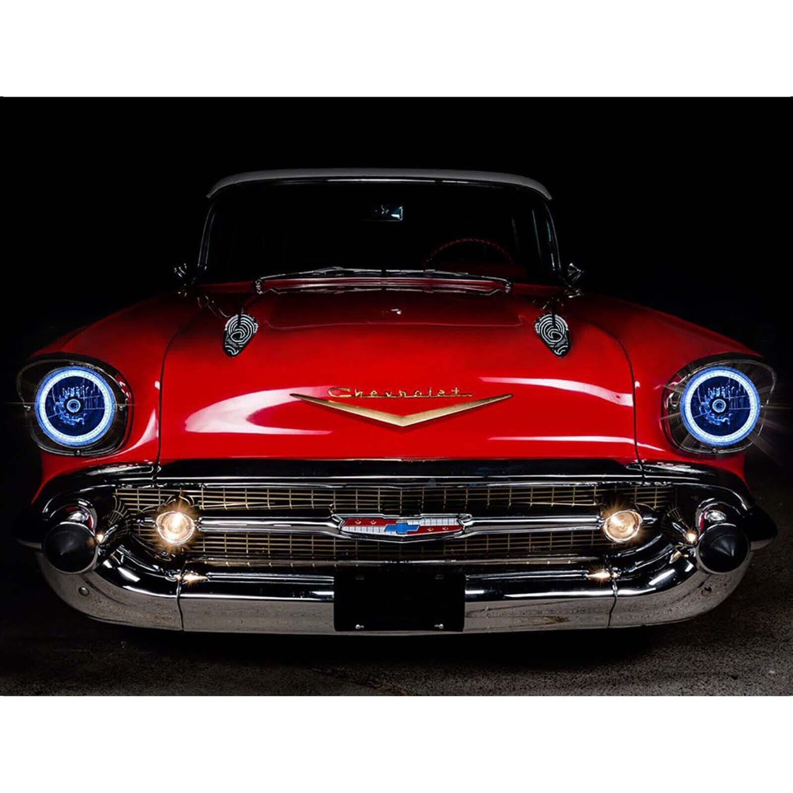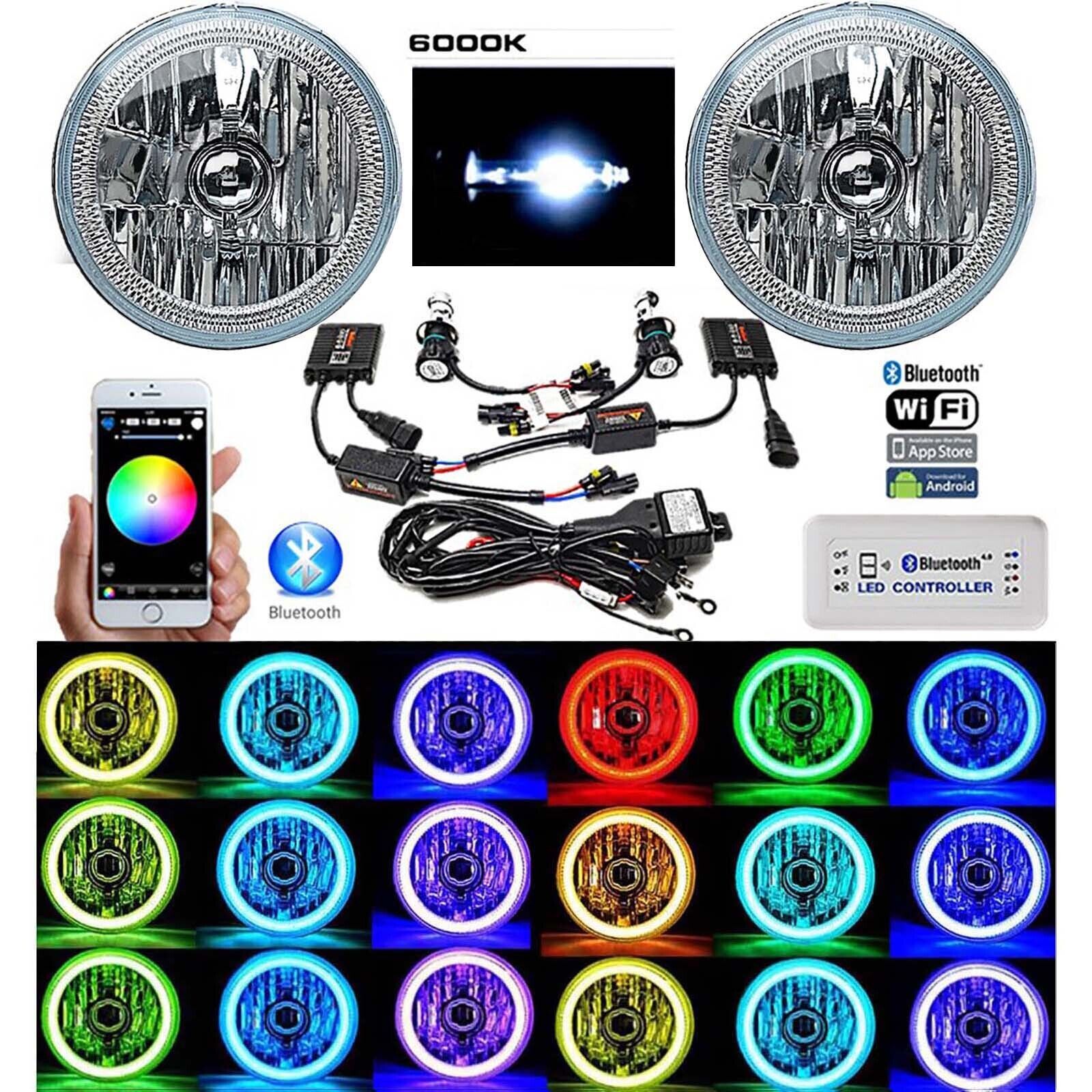 7" Bluetooth Phone RGB SMD LED Color Change Halo Angel Eye 6K HID Headlight Pair