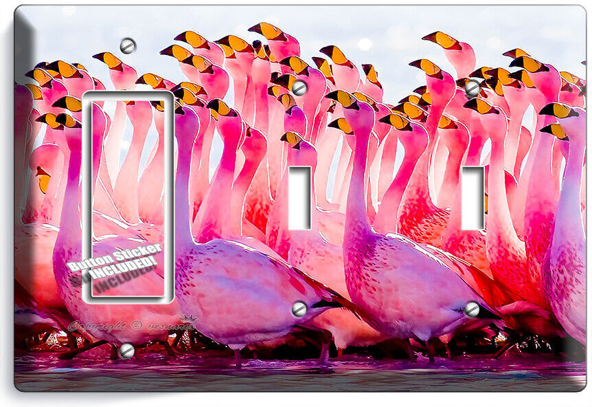 TROPICAL BIRDS PINK FLAMINGO FLOCK LIGHT SWITCH OUTLET WALL PLATE HOME ART DECOR