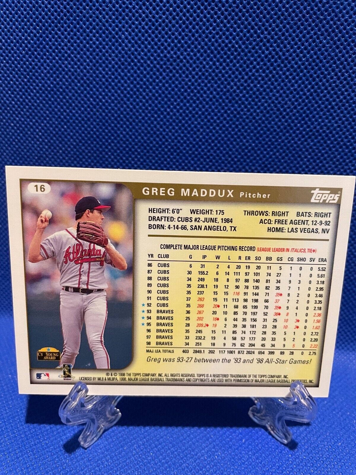 1998 Topps Greg Maddux #16 Atlanta Braves HOF