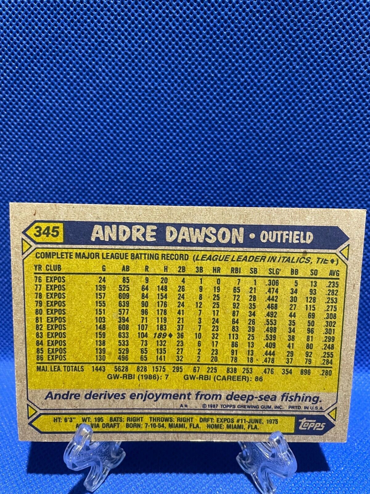 Andre Dawson 345 1987 Topps Baseball Card