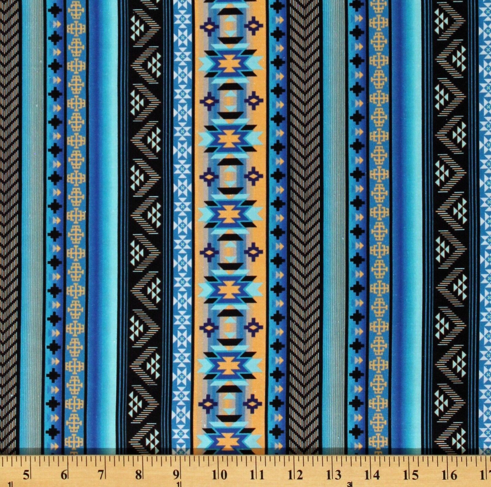 Cotton Aztec Southwestern Patterned Stripes Blue Fabric Print by Yard D464.51