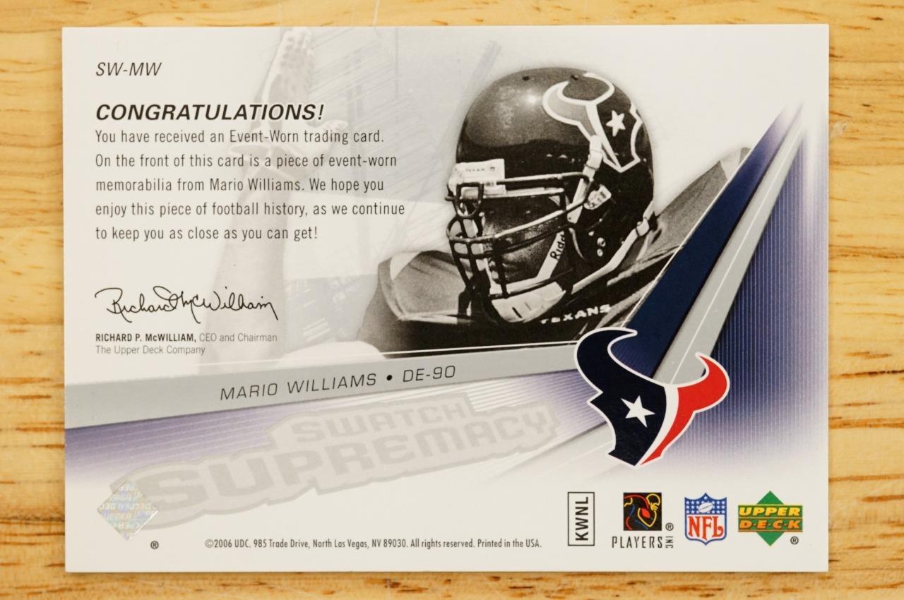 2006 Upper Deck Mario Williams #SW-MW SPX Rookie Swatch Supremacy Patch TEXANS.