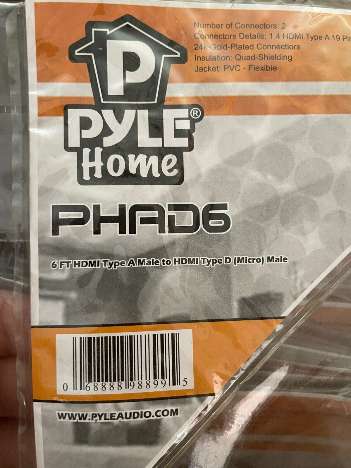 Pyle - PHAD6 - HDMI Type A Male To HDMI Type D Micro Male - 6 ft. added to cart.