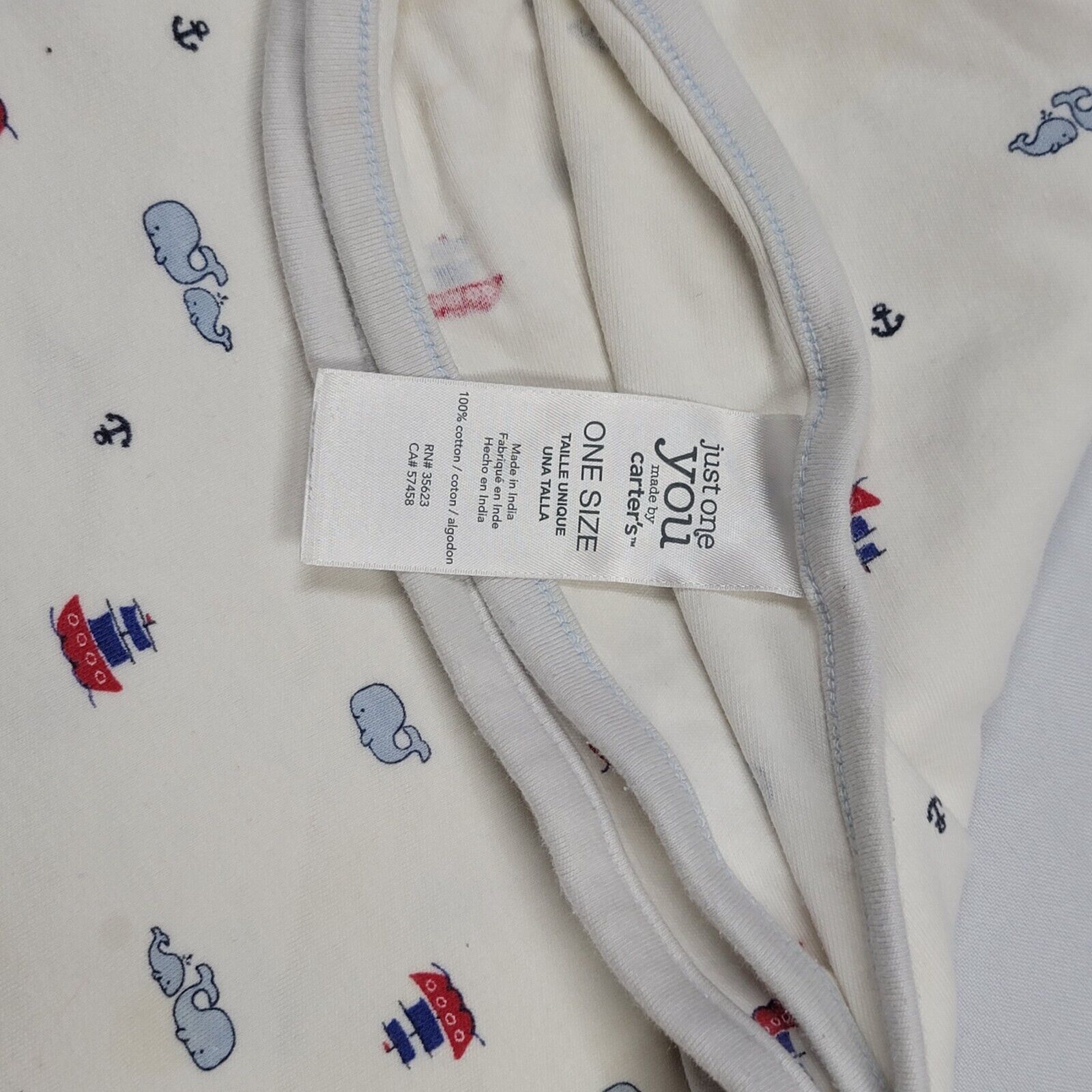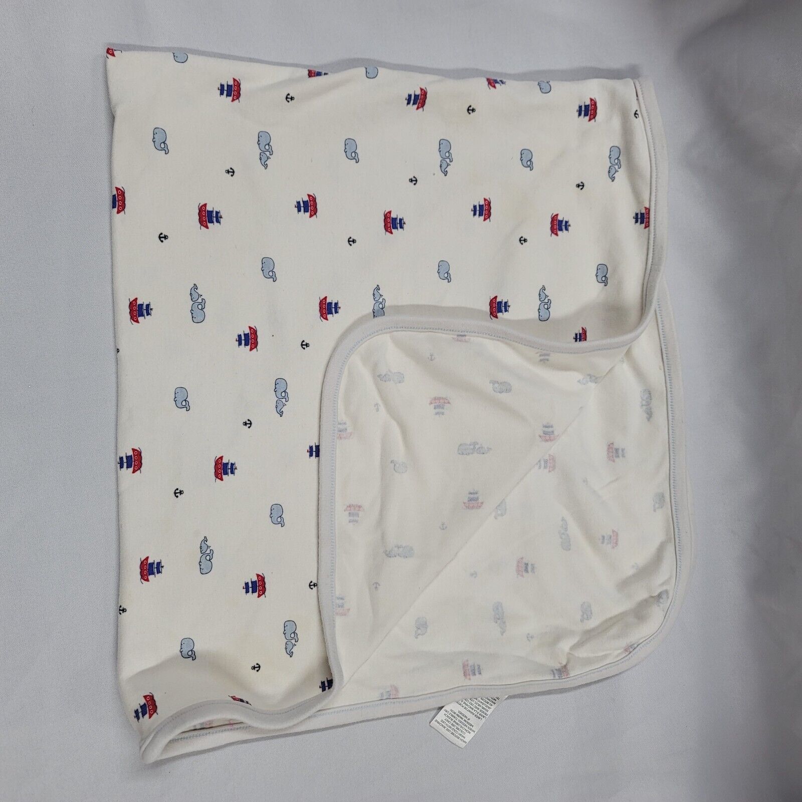 Carters Just One You Baby Blanket Navy Blue Red White Whale Anchor Boats Cotton