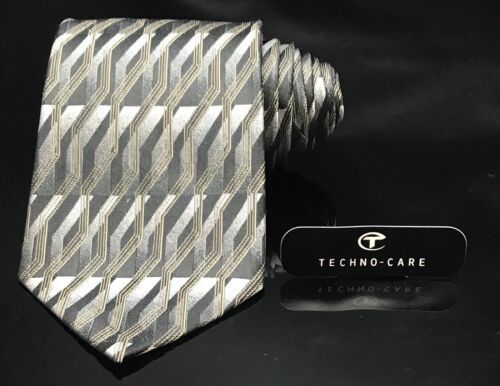 Paul Dione Silver Grey Black Geometric Design 100% Silk Neck Tie NWT!!
