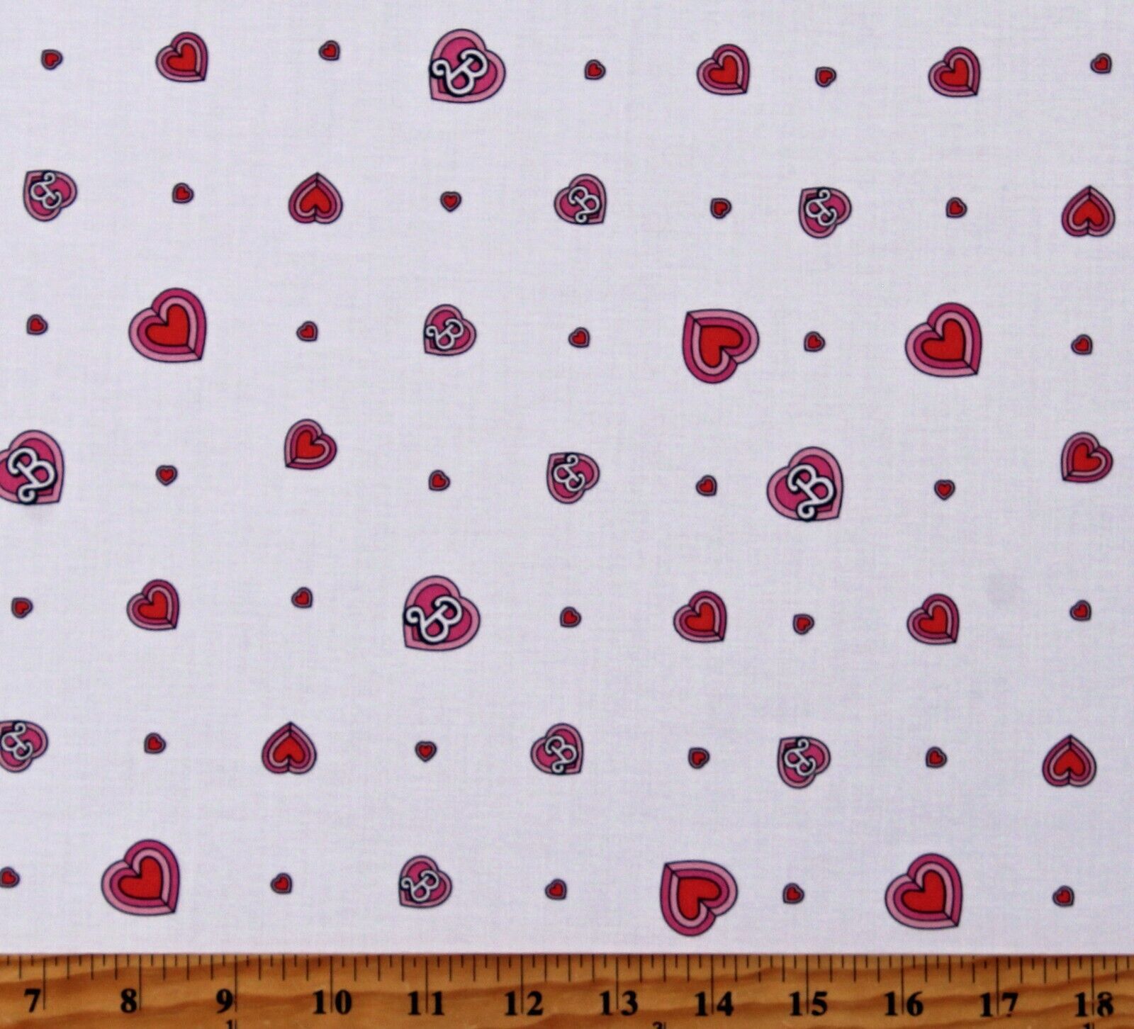 Cotton Malibu Barbie Pink Hearts Girls White Fabric Print by the Yard D679.81