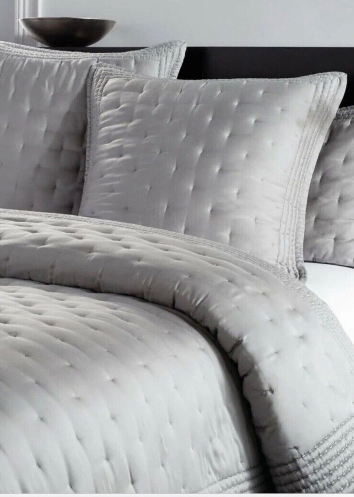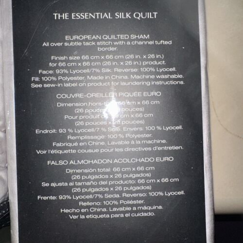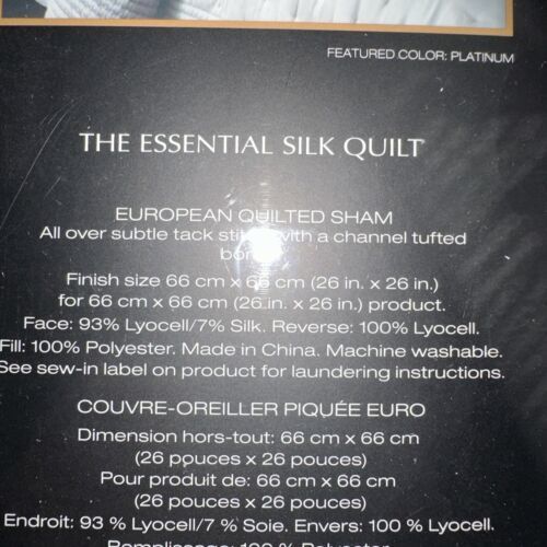 DONNA KARAN 1pc THE ESSENTIAL SILK QUILTED EURO SHAM PLATINUM 100% SILKY NIP