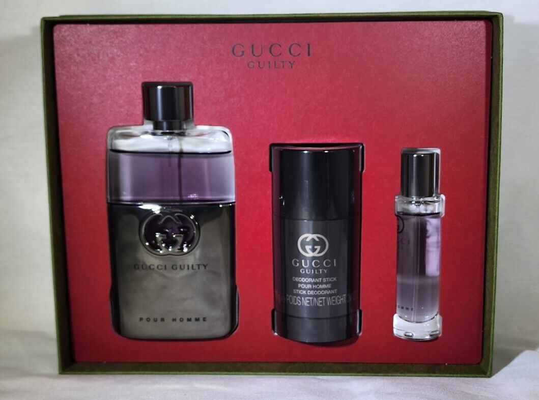 GUCCI GUILTY POUR HOMME 90ML 3.OZ EDT SP 2.5 DEO STICK 15ML EDT SP GIFT SET MEN