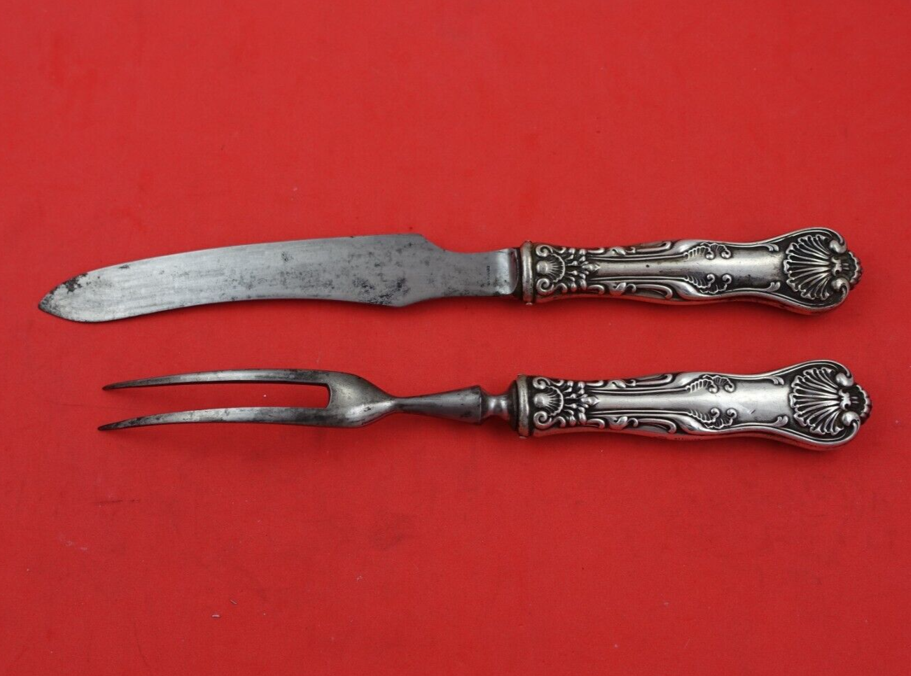 Sterling silver hollow handle with carbon steel implements (blade/tines) Steak Carving Set 2-Piece in the pattern Imperial Queen by Whiting. This set includes: