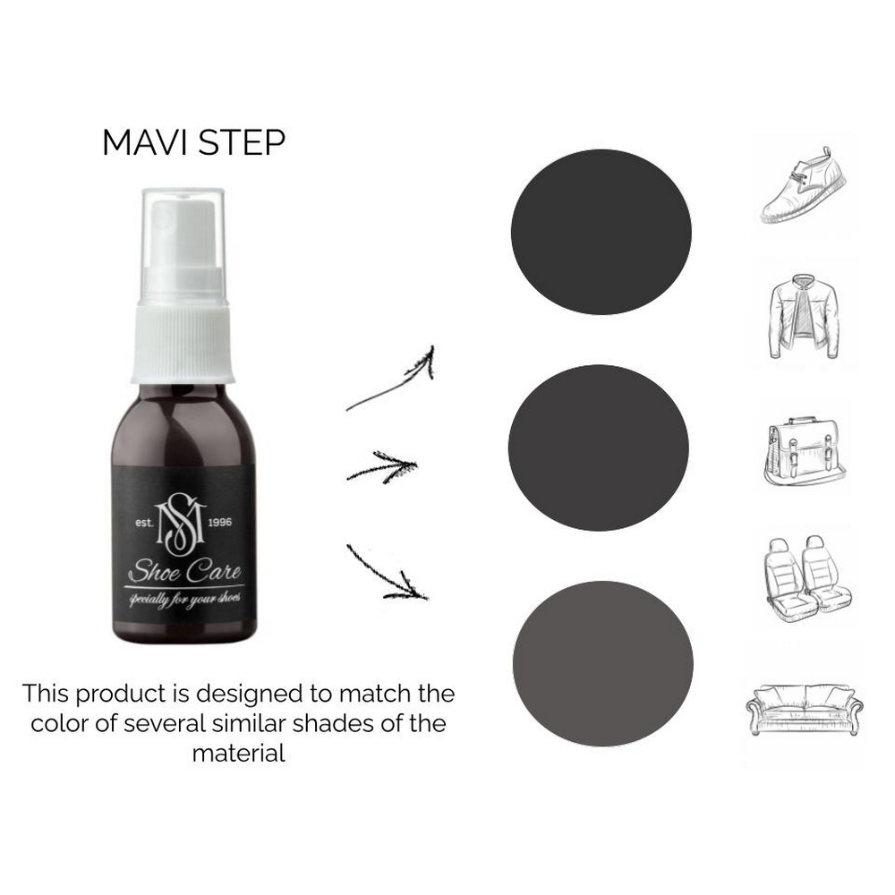 FREE OF SILICONE, PARAFFIN AND PETROLEUM PRODUCTS MAVI STEP Grease Spray, deeply nourishes, protects, restores color and structure of leather; creates a finishing coat. Thanks to the high content of natural oils, the product effectively moisturizes even the driest leather product. The product is economical, easy to apply, effective in use. MAVI STEP Grease Spray is suitable for care of shoes, clothes, bags, furniture and other leather goods. Material of application: delicate, varnished, smooth and greasy leather, greasy nubuck. Storage conditions. It is recommended to store the product out of reach of children and animals at temperatures from +5 to +45 C. How to use MAVI STEP Grease Spray for leather