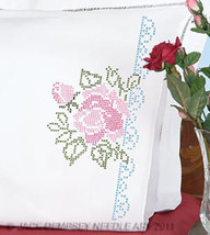 Jack Dempsey Needle Art XX Roses Perle Edge Pillowcase.