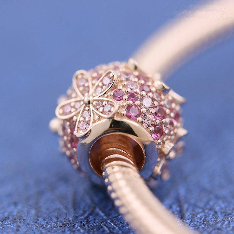 2020 Spring Release Rose™ Pink Pavé Daisy Flower Charm With CZ & Crystal Charm