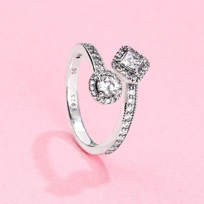 2017 Spring Release Sterling Silver Abstract Elegance Open Ring With Clear CZ
