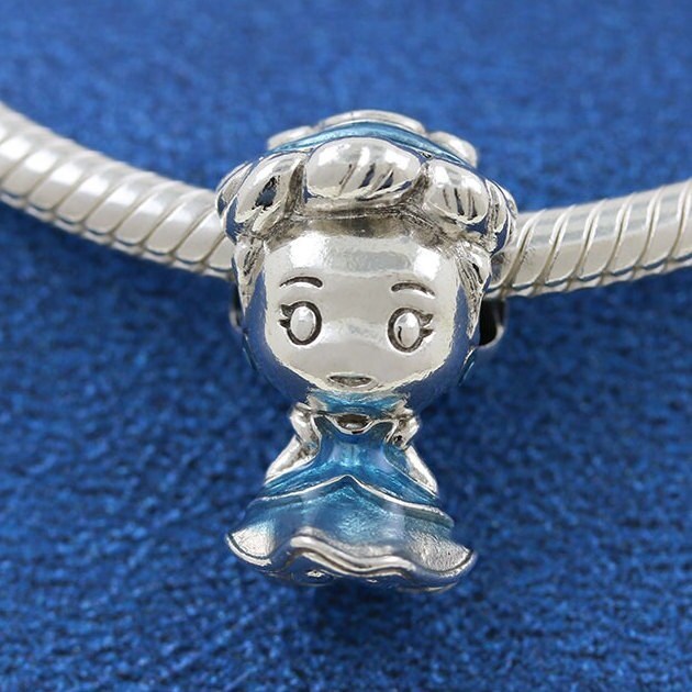 Channel your inner princess with the Disney Cinderella Charm. Hand-finished in sterling silver, this charm includes engraved facial features and translucent blue hand-applied enamel, giving Cinderella's dress, headband and earrings vivid pops of color. Inspired by Cinderella's positive personality and instantly recognizable look, this Disney Cinderella charm will remind you of your favorite Disney Princess moments, making it an iconic addition to any collection by bringing a playful touch to your everyday style.