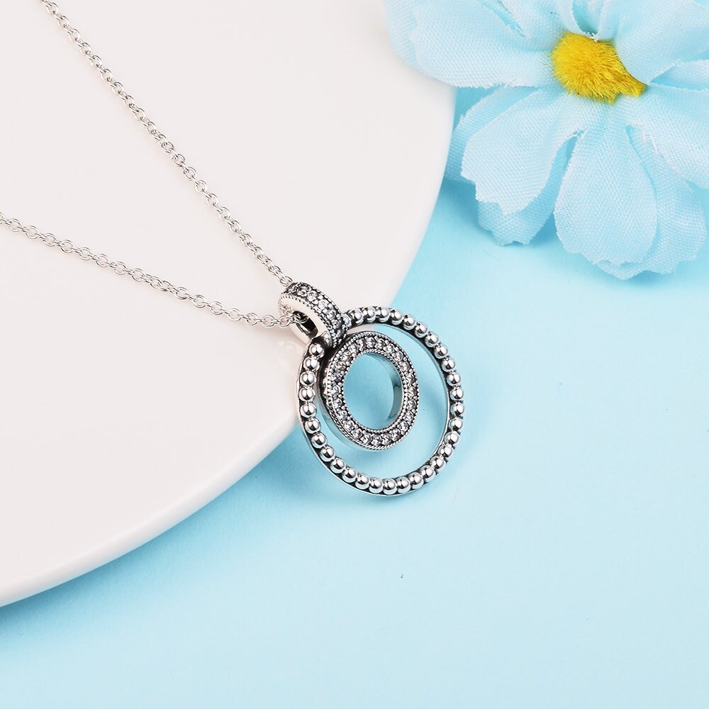 925 Sterling Silver Signature Pavé & Beads Pendant and Necklace 50CM
