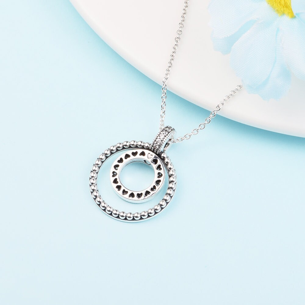 Our classic Signature design elements have come full circle. Crafted from sterling silver, the Signature Pave Beads Pendant Necklace features two textured circles, one of which spins for a touch of dynamic movement. Cut-out hearts adorn the pendant’s reverse while a row of pave sparkles on the bail. Two jump rings allow you to adjust the length, making it your perfect go-to piece for any occasion.