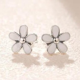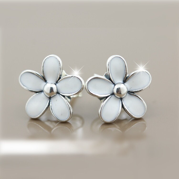 925 Sterling Silver Darling Daisies with White Enamel Stud Earrings