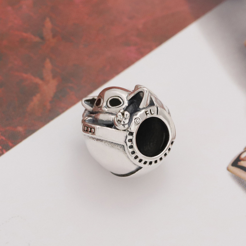 925 Silver Star Wars Yoda Baby Grogu with Crib Charms Fit Moments Bracelet