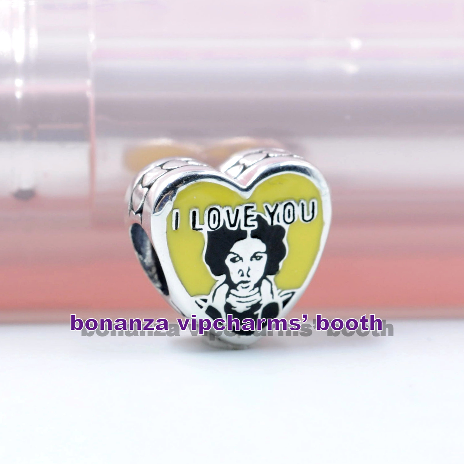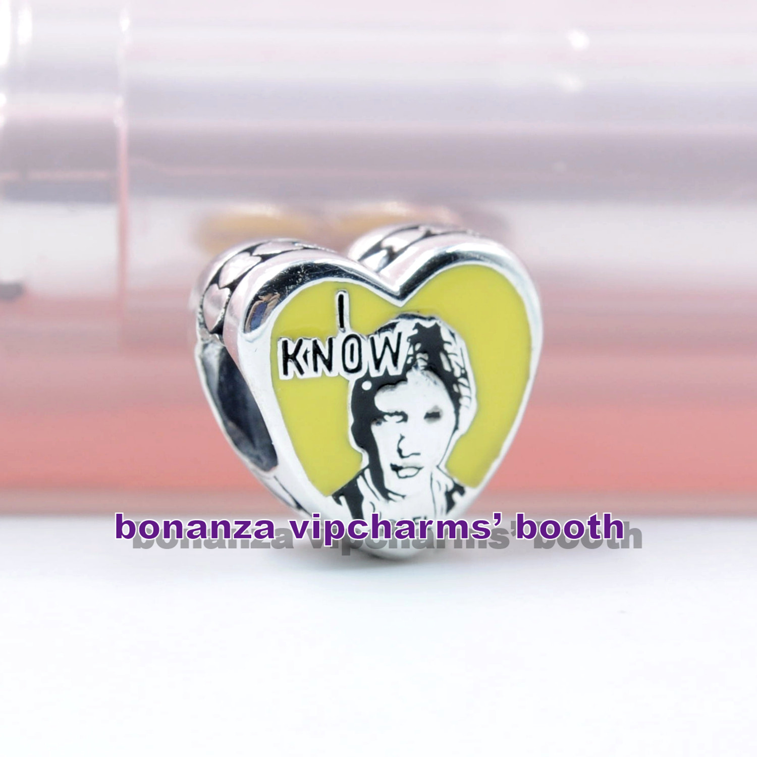 925 Sterling Silver Heart Han Solo Princess Leia Star Wars Charm Moments Charm