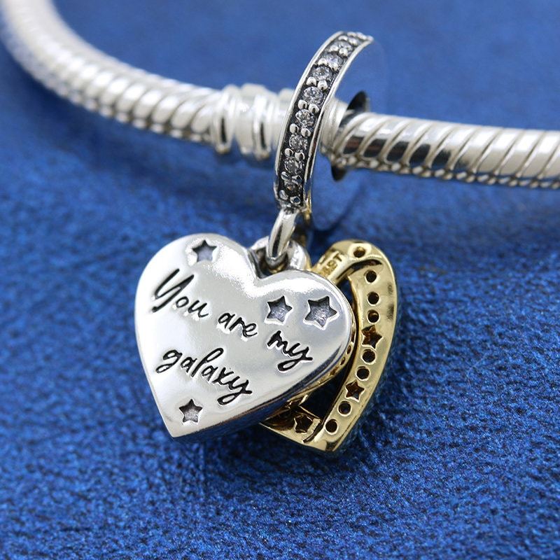 Add a celestial dimension to Chinese Valentine’s Day with our Shooting Star Hearts Double Dangle Charm. This two-tone symbol of heavenly romance features a 14k gold-plated heart, decorated with a constellation of sparkling stars. The second dangle is a sterling silver heart engraved with the message: "You are my galaxy." Inspired by the tale of the Sky Emperor’s daughter Zhinü and her earthly lover, it’s the perfect way to celebrate your union; a shining reminder that true love knows no limits.