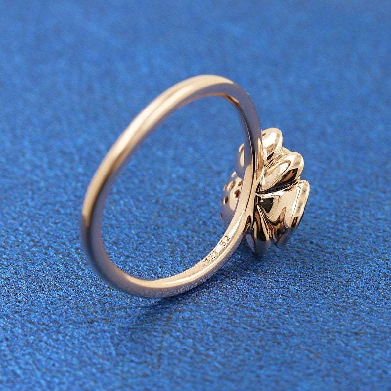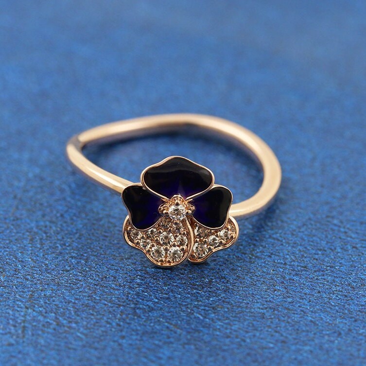 2022 Spring Release Rose Gold Deep Purple Pansy Flower Ring With Enamel